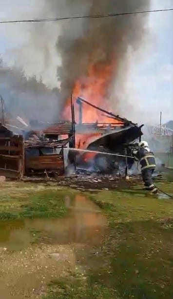 Yangın sonucu ahır tamamen kullanılamaz hale gelirken, içeride bulunan 2 köpeğin telef olduğu belirlendi. Olayla ilgili inceleme başlatıldı.