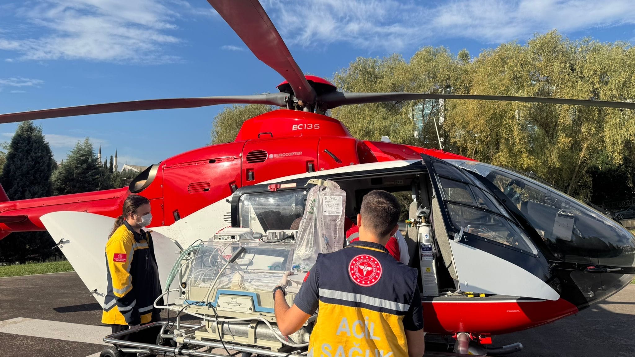 Bronkopulmoner Displazi tanısı bulunan ve entübe durumda olan bebek, uzman sağlık ekibi eşliğinde helikopterle güvenli bir şekilde Karabük Eğitim ve Araştırma Hastanesi Yenidoğan Yoğun Bakım Ünitesi’ne sevk edildi.