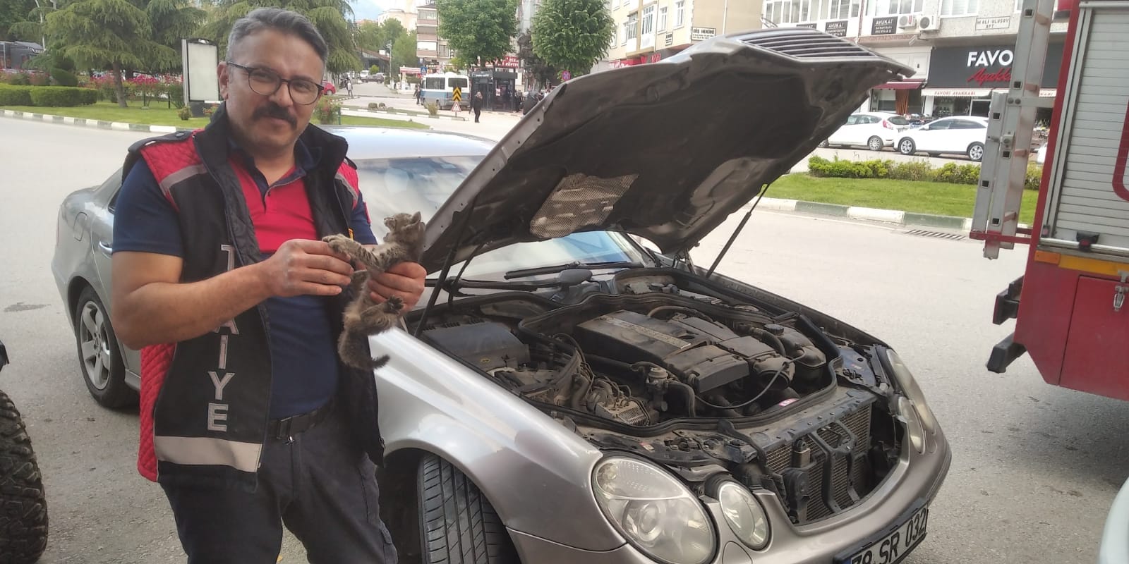 Olay, şehir merkezinde park halindeki bir otomobilin motor kısmından gelen miyavlama sesleriyle fark edildi. Vatandaşların durumu ivedilikle itfaiyeye bildirmesi üzerine olay yerine gelen ekipler, arabanın kaputunu dikkatlice açarak kedinin yerini tespit etti. Titiz bir çalışmayla küçük yavru zarar görmeden bulunduğu yerden çıkarıldı.