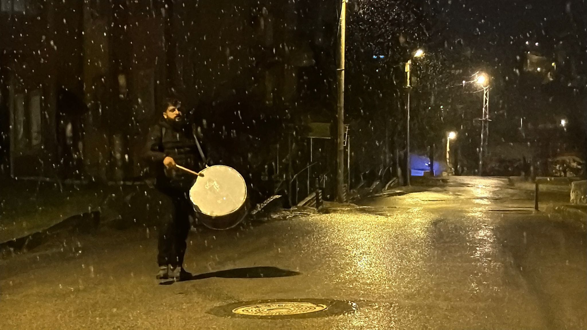 Misoğlu, “Rahmetli dedemden babama, babamdan bana geçti bu gelenek. Şu an kar yağıyor. Biz de kar yağmur demeden görevimizin başındayız. Evlerimizden çıkıp milletimizi sahura kaldırmaya çalışıyoruz.” ifadelerini kullandı.