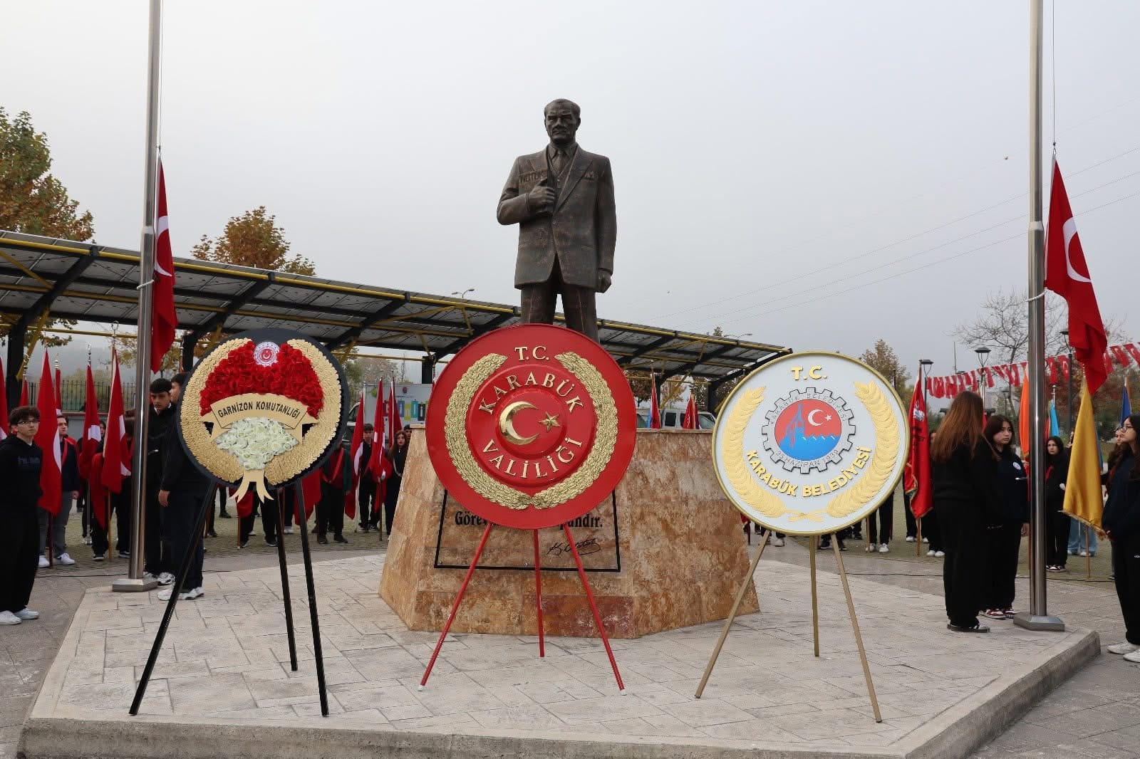 Karabük Valisi Sayın Mustafa Yavuz, Karabük Garnizon Komutanı Albay Murat Gürcan ve Karabük Belediye Başkanı Özkan Çetinkaya tarafından Atatürk Anıtına Çelenklerin sunulmasının ardından sirenlerin çalması ile birlikte saat 09:05’te Ulu Önder Mustafa Kemal Atatürk’ün anısına 2 dakikalık Saygı Duruşu ve İstiklal Marşımızın okunmasının ardından tören, Bayrakların yarıya indirilmesi ile sona erdi.