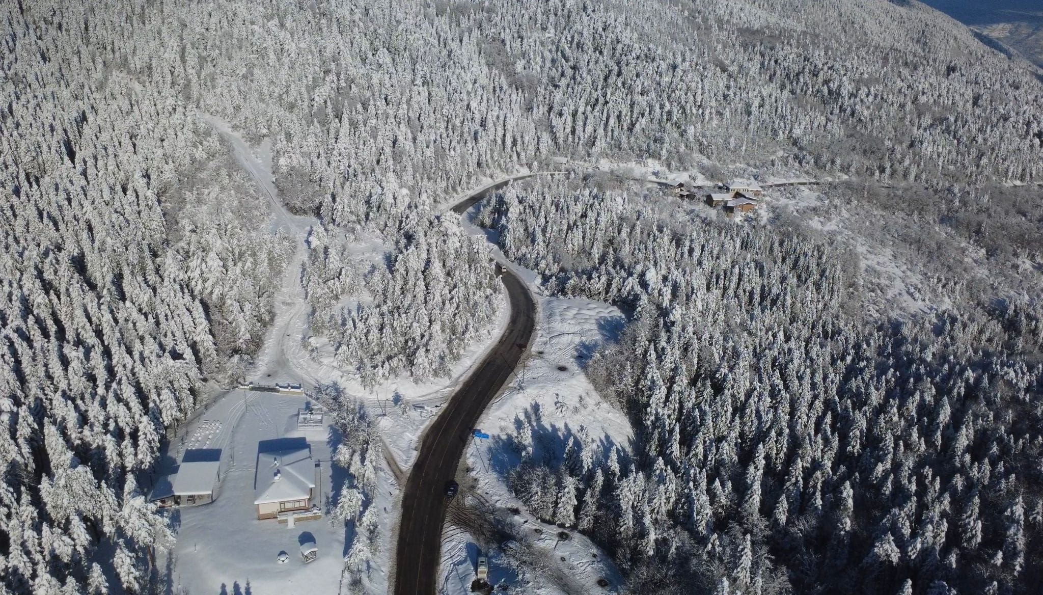 Karabük-Bartın kara yolunun 1030 rakımlı Ahmetusta mevkiinde yoğun kar yağışı etkili olurken, sürücüler yolda düşük hızla ilerlemek zorunda kaldı. Bölgede karla kaplanan çam ağaçları kartpostallık görüntüler oluşturdu.