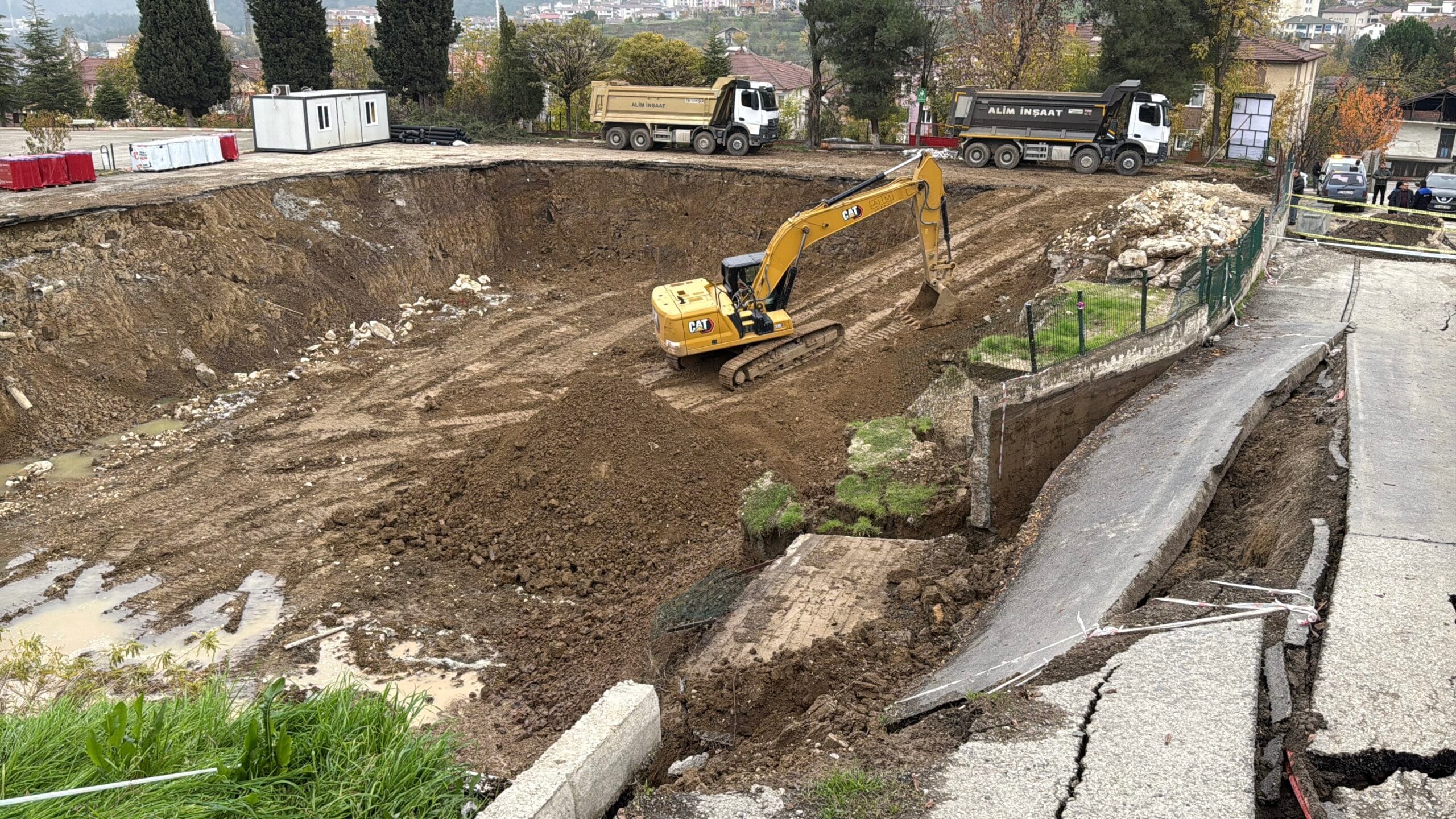 Karabük’te okul inşaatı yanında bulunan yolda çöktü.