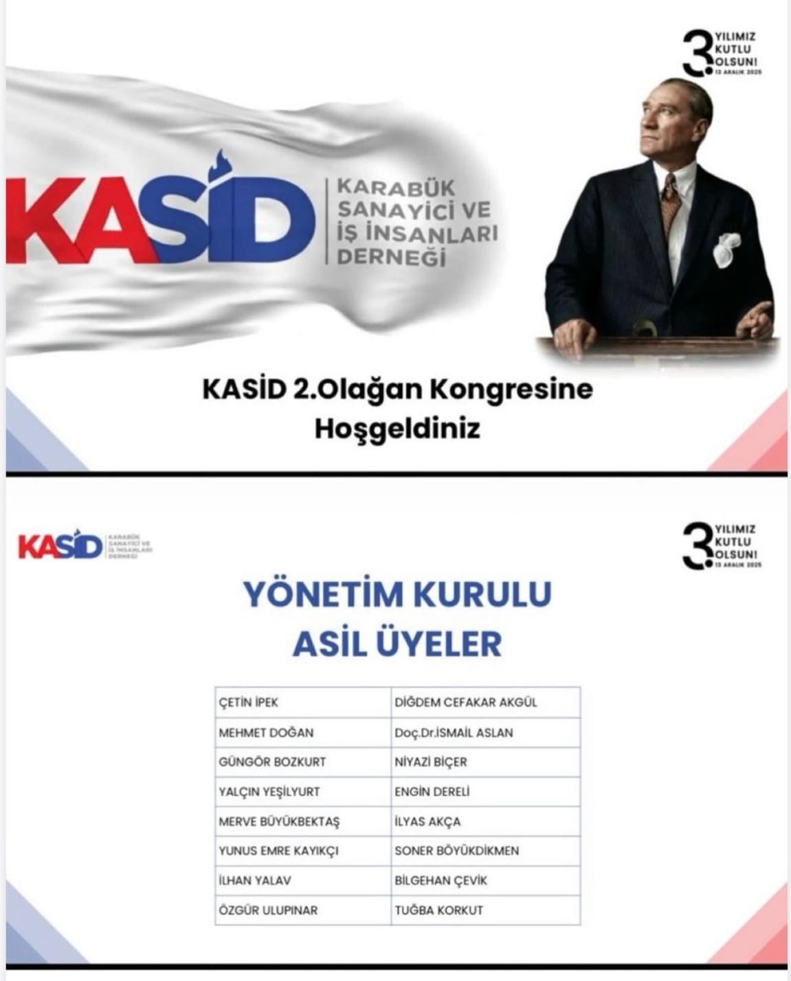 KASİD Yönetim Kurulu Başkanı Çetin İpek, genel kurulun ardından yaptığı açıklamada, programa katılım sağlayan ve mesajlarıyla destek veren AK Parti Karabük Milletvekilleri Cem Şahin ve Ali Keskinkılıç’a, Karabük Ticaret ve Sanayi Odası (TSO) Başkanı Fatih Çapraz’a, Karabük Üniversitesi Rektörü Prof. Dr. Fatih Kırışık’a, dernek üyelerine, sivil toplum kuruluşlarının temsilcilerine, iş dünyasının paydaşlarına, kamu yöneticilerine ve basın mensuplarına teşekkür etti.