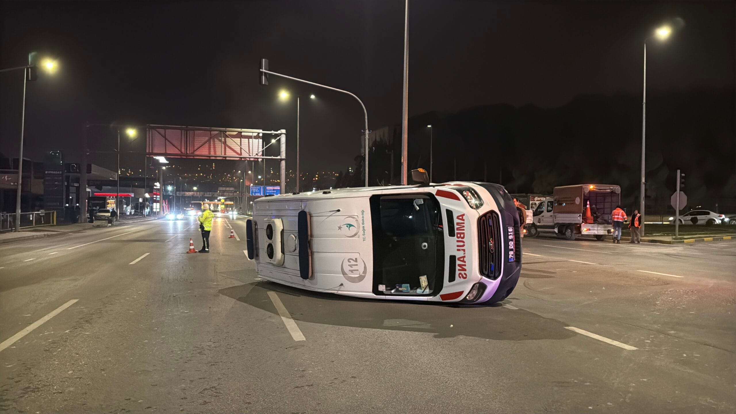 Olay, 22.00 sıralarında Ergenekon Mahallesi’nde meydana geldi. E.G. idaresindeki 78 DD 916 plakalı ambulans Atatürk Bulvarı Sanayi Kavşağı yönüne geçiş yapmak istediği esnada M.M. idaresindeki 78 ABL 976 plakalı otomobil ile çarpıştı.