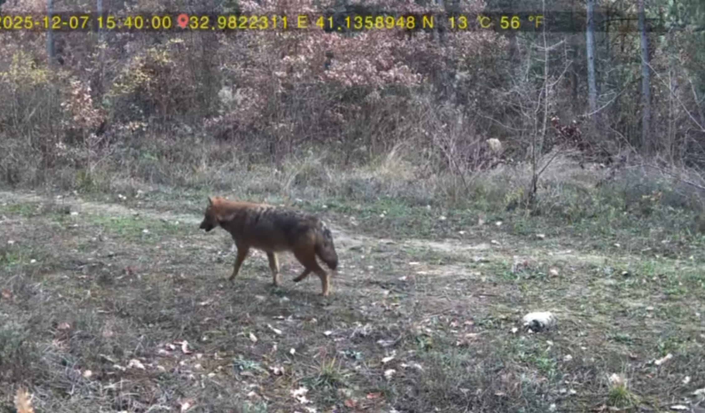Karabük’ün Ovacık ilçesinde ormanlık alanda dolaşan vaşak ile kurt fotokapana yansıdı.